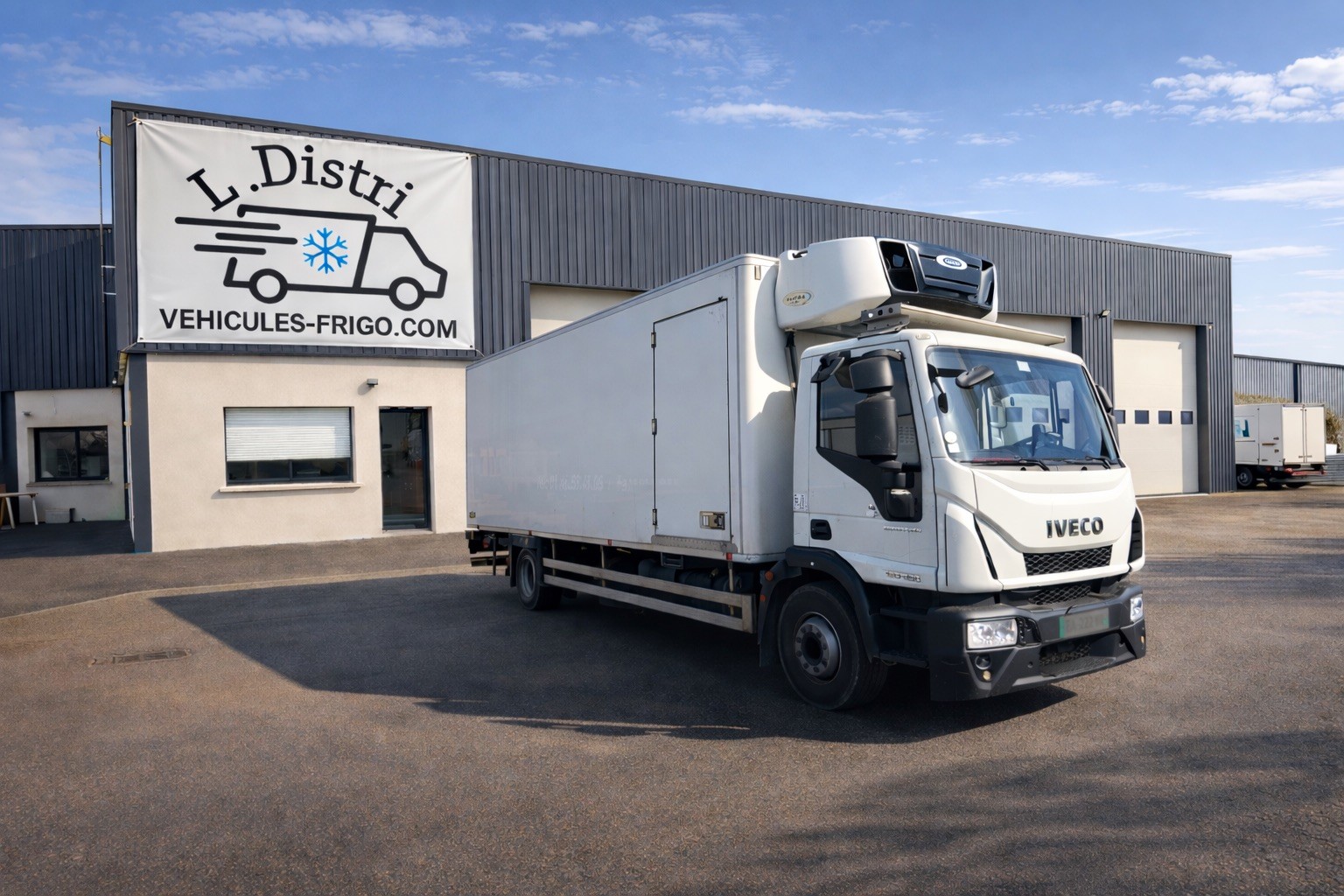 IVECO EUROCARGO 160E25P FRIGORIFIQUE REFERENCE : 222FR110 DONNÉES TECHNIQUES : Charge utile : 6 070 kg Empattement : 5 670 mm Roues: 4X2 CAISSE CARRÉE : BI-TEMPS Porte latérale : Oui Cloison : Oui ATP / 02/2028 HAYON : Marque : D'hollandia Capacité : 1 500 kg ÉQUIPEMENT FRIGORIFIQUE : Marque : Carrier Type : Supra 1150 mt° Températures : Positif / Négatif Alimentation : Route / Secteur 380V