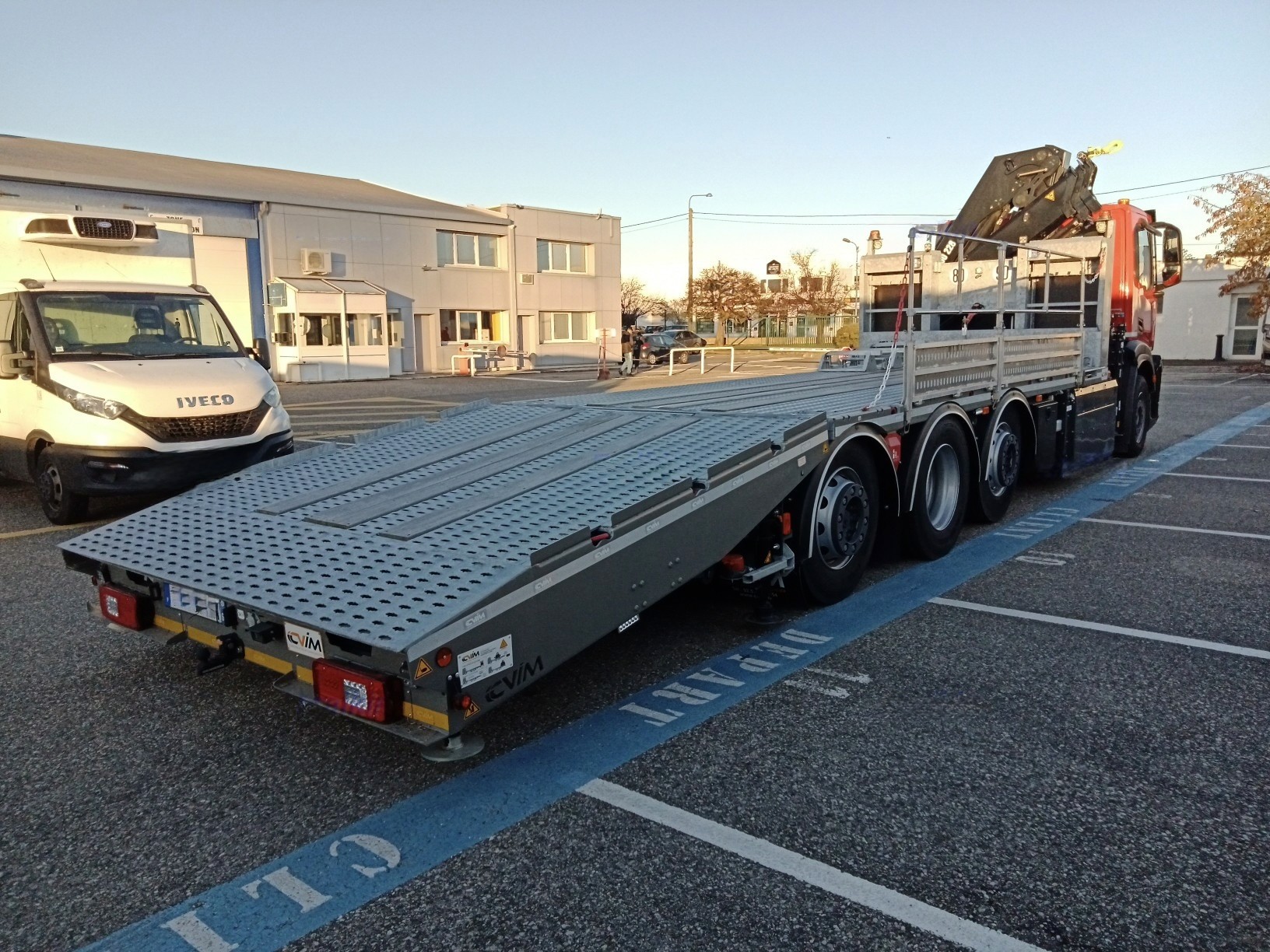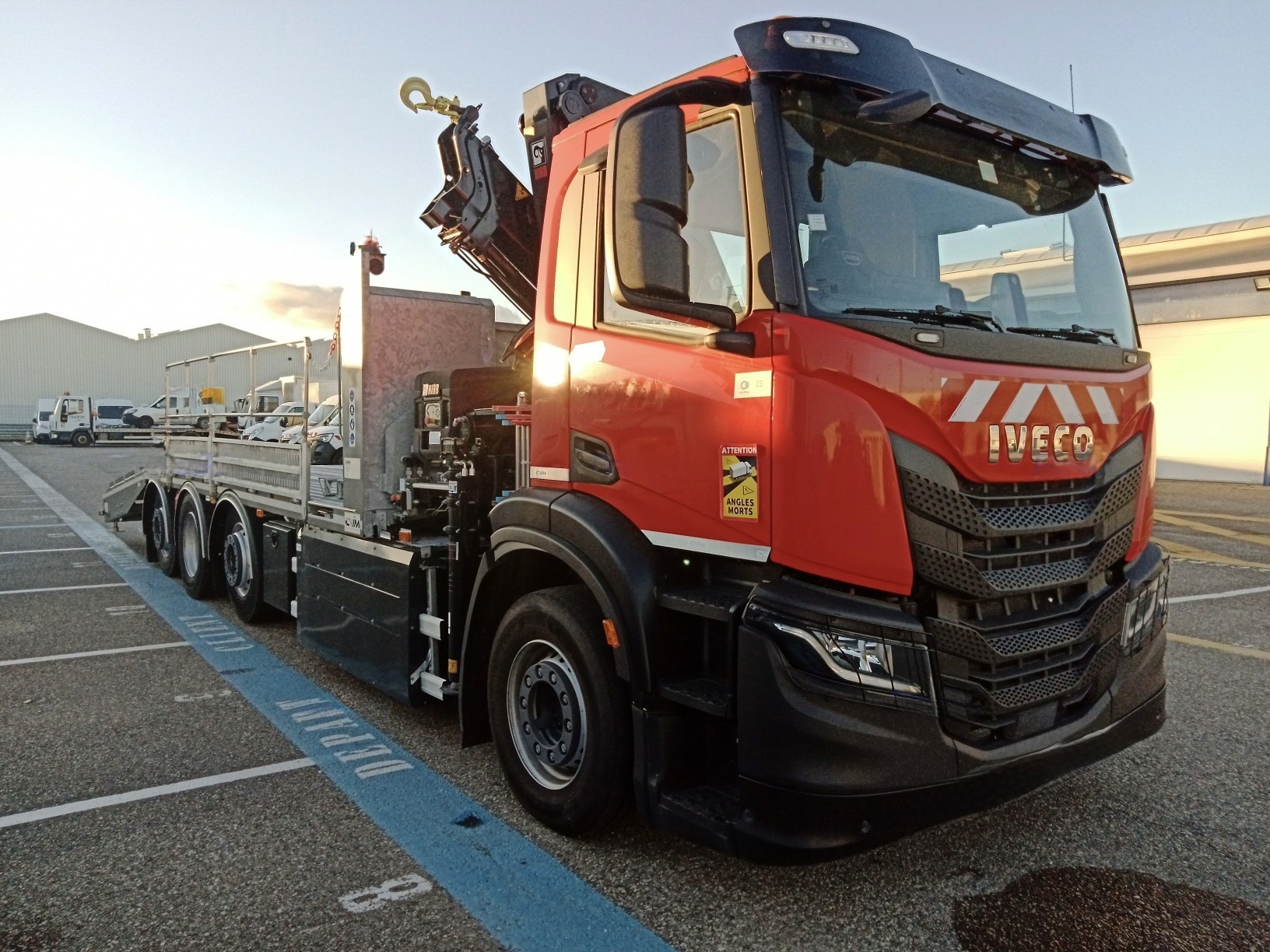 IVECO S WAY PLATEAU REFERENCE : 388FR215 DONNÉES TECHNIQUES : Adblue : Oui Charge utile : 14 600 kg Empattement : 4 685 mm Essieux : 2 - 4 Directeur Ralentisseur : Hydraulique DIMENSSIONS UTILES ET ASPECT : Grue : Hiab X HIDUO E2 Hauteur : 8 M 40 Puissance : 23 Passerelle hydraulique : 5 750 mm x 430 m Capacité de levage : 2 400 kg Treuil : 7 200 kg