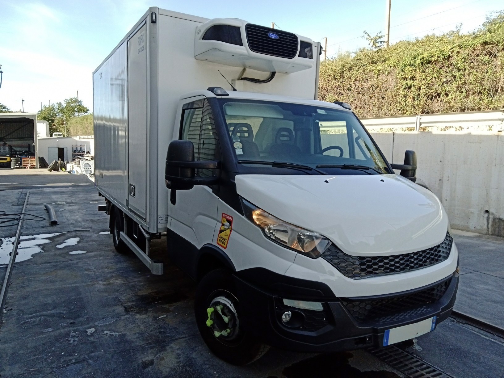 IVECO DAILY 70C17 FRIGORIFIQUE REFERENCE : 626FR155 DONNÉES TECHNIQUES : Adblue : Oui Pneus : 50% Charge utile : 3 040 kg CAISSE CARRÉE : BI-TEMPS Porte latérale : Oui Cloison relevante : Oui ATP / FRCX : 04/2028 HAYON : Marque : D'hollandia Capacité : 1 000 kg ÉQUIPEMENT FRIGORIFIQUE : Marque : Carrier Type : Pulsor 600 MT° Températures : Positif / Négatif Alimentation : Route / Secteur 380 Volts