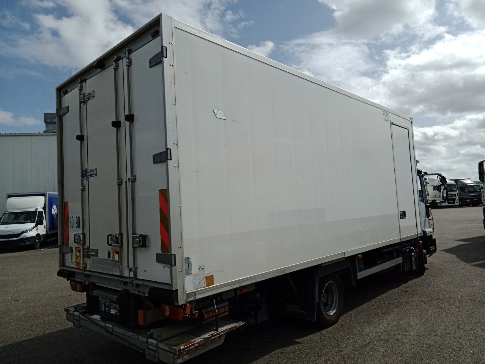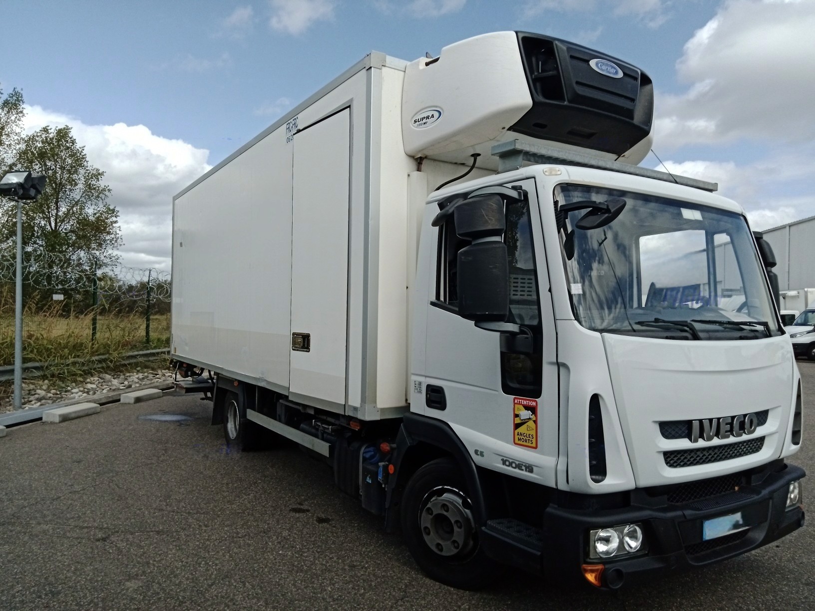 IVECO EUROCARGO 100E19 FRIGORIFIQUE REFERENCE : 720FR950 DONNÉES TECHNIQUES : Adblue : Oui Pneus : 50% Charge utile : 2 710 kg Roues : 4X2 CAISSE CARRÉE : Porte latérale : Oui ATP - FRC : 06/2027 HAYON RETRACTABLE : Marque : D'hollandia Capacité : 1 500 kg ÉQUIPEMENT FRIGORIFIQUE : Marque : Carrier Type : Supra 1150 MT° Températures : Positif / Négatif Alimentation : Route / Secteur 380 volts