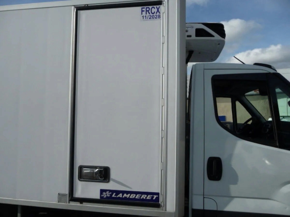 IVECO DAILY 35C18 FRIGORIFIQUE - REFERENCE : 995FR300 DONNÉES TECHNIQUES : Charge utile : 370 kg Empattement : 3 450 mm Roues : Jumelées CAISSE CARRÉE : Porte latérale : Oui ATP / FRCX : 11/2028 RENOUVELABLE 2031-2034 HAYON : Marque : D'hollandia Capacité : 750 kg Tablier : 1 600 mm ÉQUIPEMENT FRIGORIFIQUE : Marque : Carrier Type : Xarios 350 Température : Positif / Négatif Alimentation : Route / Secteur 220 volts